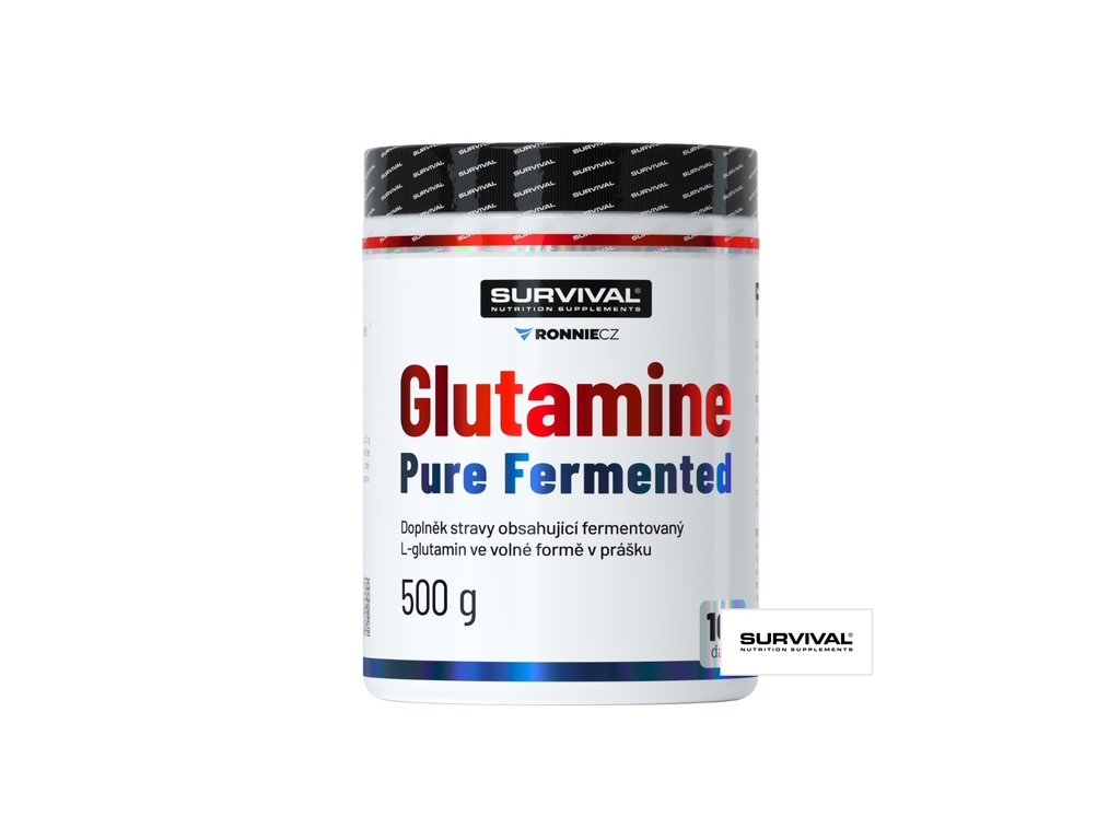 Glutamine Pure Fermented značky Survival ponúka 500gramové a/alebo 300gramové cenovo veľmi výhodné balenie voľnej formy tejto semiesenciálnej aminokyseliny, ktorú je zvlášť vhodné používať bezprostredne po tréningu a večer pred spaním. Možno používať v kombinácii s inými doplnkami športovej výživy.